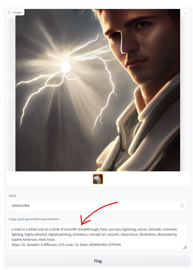 If you're like me, you experiment a lot with prompts and settings, and only few images are worth saving. You can just save them using right click in browser, but then you won't be able to reproduce them later because you will not know what exact prompt created the image. If you use the flag button, generation paramerters will be written to csv file, and you can easily find parameters for an image by searching for its filename.